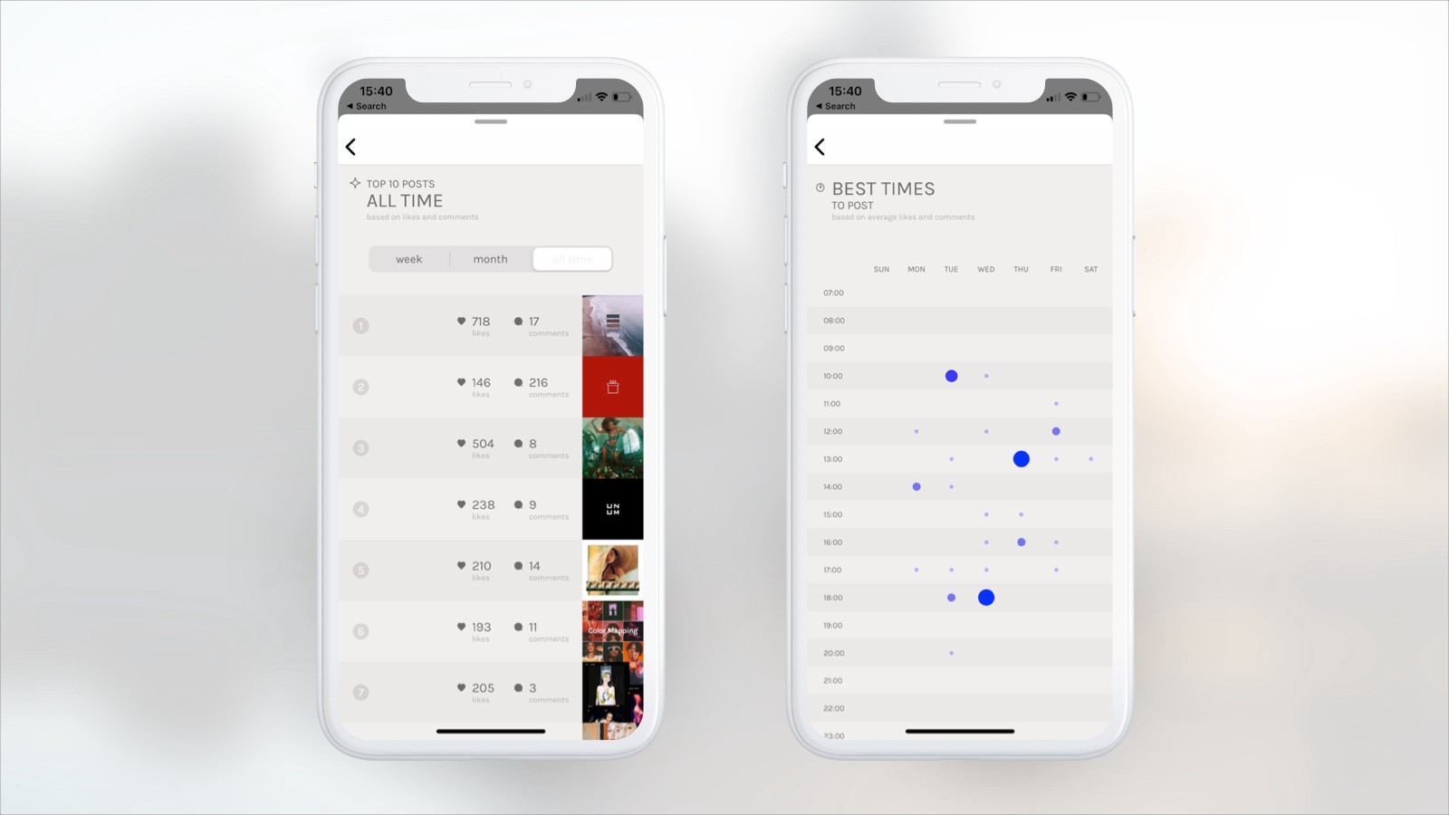 Utilize UNUM’s Analytics features and/or Instagram Insights (if you have a business account) to find out the best times to post, what type of previously published content performed the best, and what hashtags you could use to increase discoverability.