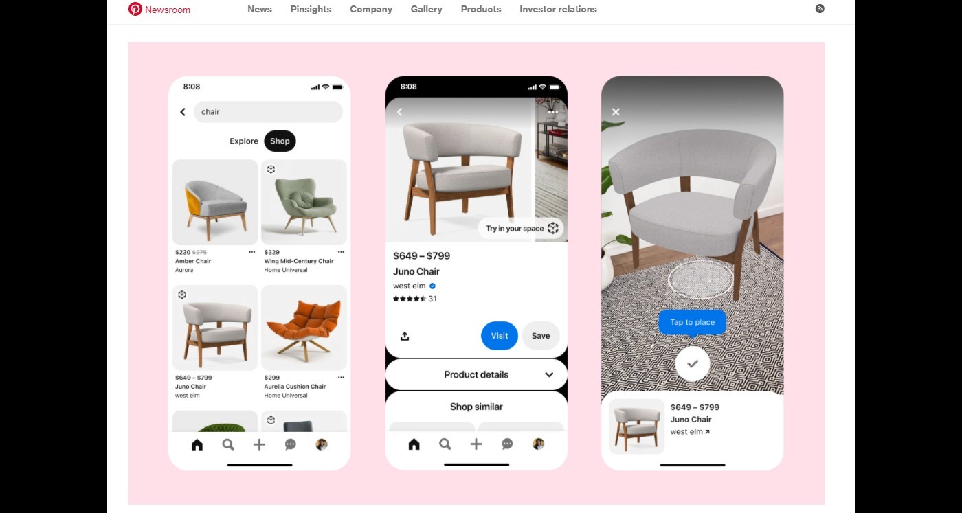 6. Pinterest users can “Try On Home Decor” with augmented reality