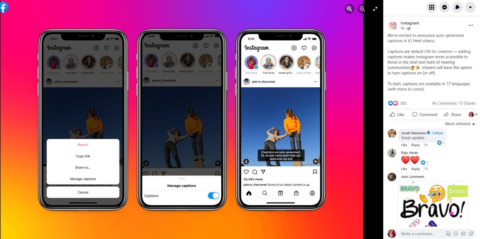 Instagram made captions the default for IGTV in 2020, and for Stories in 2021. This year, auto-captions will be generated for all Instagram feed videos in up to 17 languages. Captions are default ON for creators,” Instagram announced in a FB post. “Adding captions makes Instagram more accessible to those in the deaf and hard-of-hearing communities.”