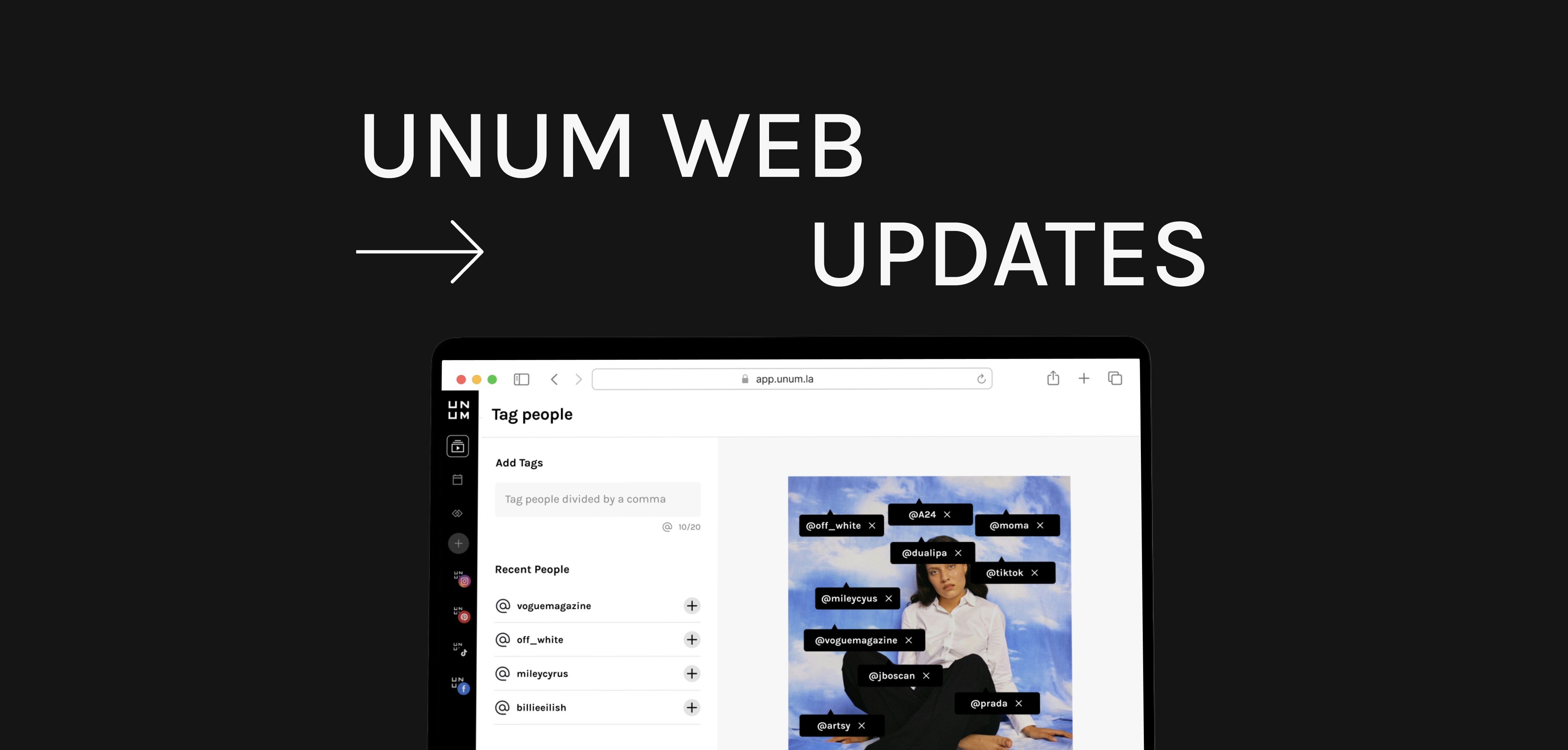 In just a few days, you'll be able to directly tag up to 20 Instagram accounts from UNUM Web App. Simply head to the caption section, click on the 'tag icon', and enter the usernames you want to include. Perfect for collaborations and increasing engagement, this new feature allows you to save, schedule, or auto-post your content with all tags in place. (IOS coming soon!)