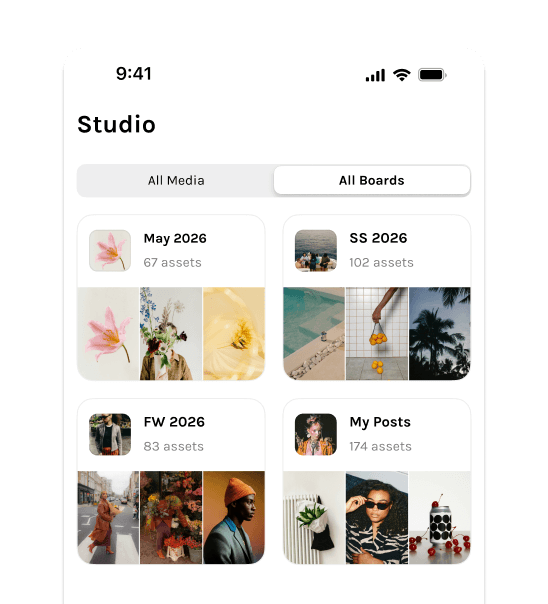 Plan by month, build a campaign board, or collect inspiration. Boards are yours to use however your brain works.